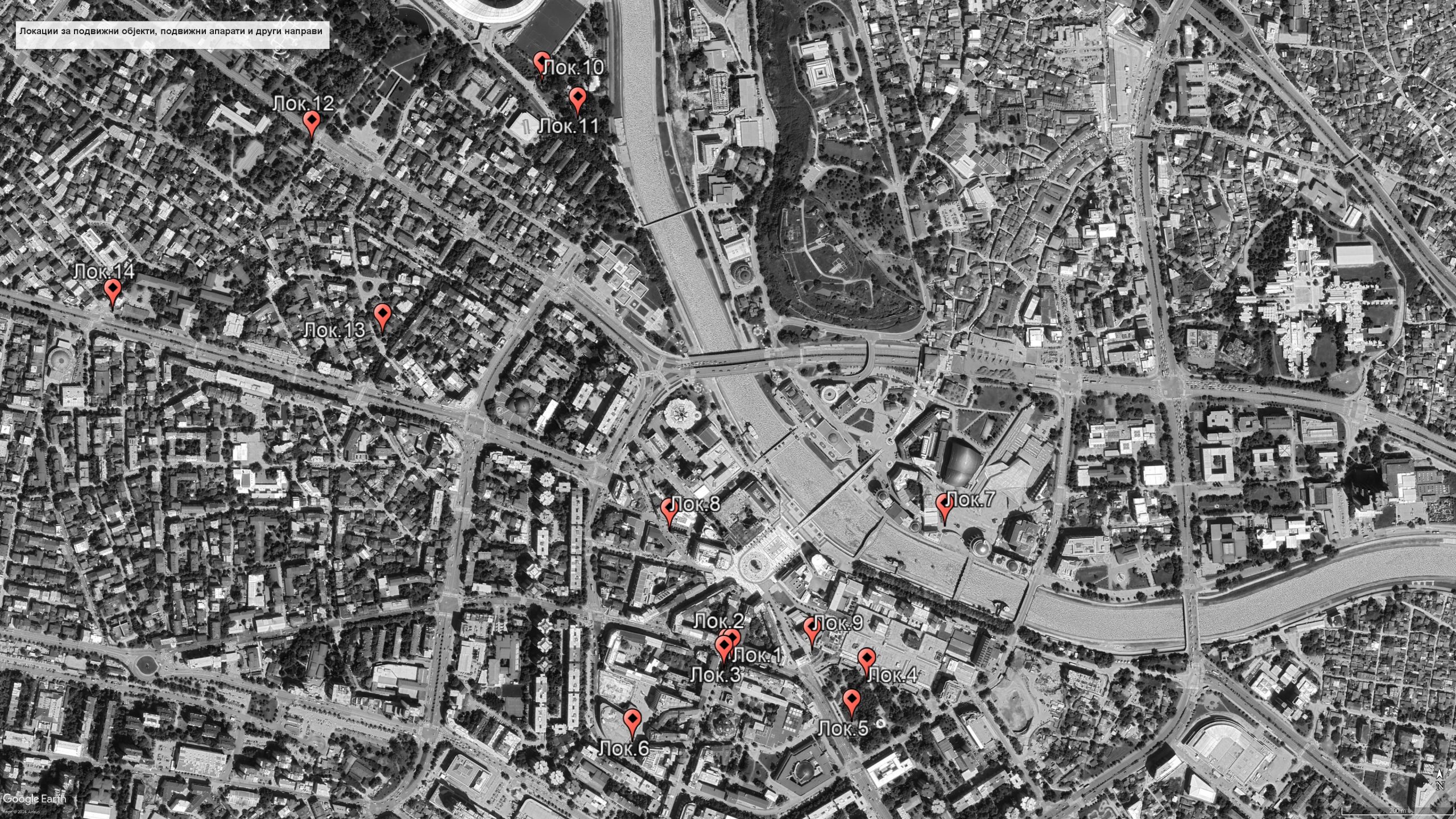 1.2. Подвижните објекти, подвижните апарати и другите подвижни направи ќе се поставуваат на 14 локации на подрачјето на Општина Центар – Скопје