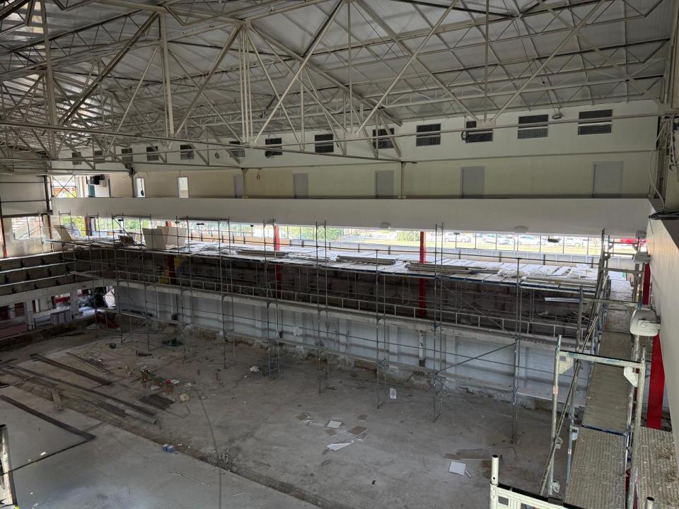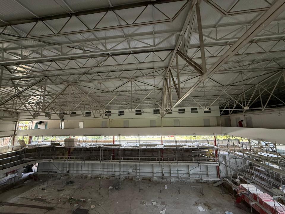 Во тек се подготовки за поставување семафори и кошеви, како и поставување вентилациони канали за одвод на чад. Во долниот дел од салата се изведуваат работи на тоалетите и соблекувалните.