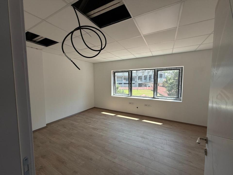Конструкцијата на кровот е целосно завршена, а вградените прозорци овозможуваат природна светлина во просторот.