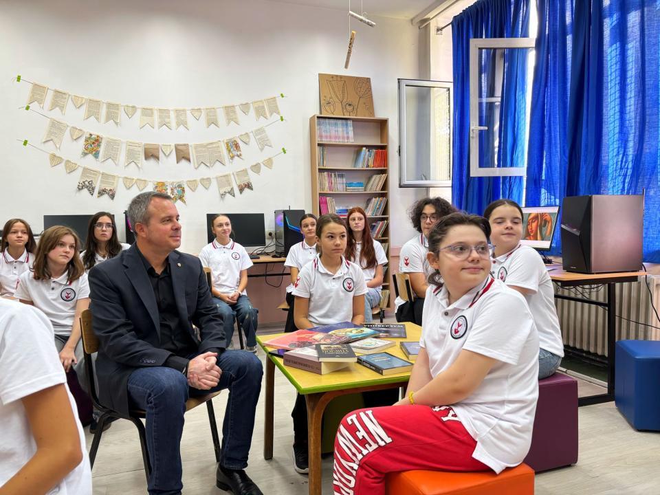 Медијатеката е пример за тоа како училиштата можат да ги модернизираат своите наставни процеси. Верувам дека ова катче ќе стане омилено место за стекнување знаење и инспирација кај учениците. Можам слободно да кажам дека ова е едно од училиштата што најмногу го посетувам, вие бевте пример и единствени од сите училишта во државата кои први ги отстранија мобилните телефони за време на настава, тоа беше поттик да продолжиме и во останатите седум училишта во Центар. Како општина посветуваме многу внимание за спречување на врсничкото насилство.