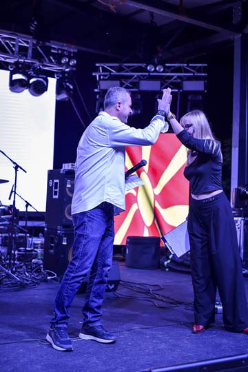 „Но ете, идејата прерасна во прекрасна традиција. Трета година по ред се собираме овде, во срцето на Скопје, под отворено небо, на концертот ‘Нешто што ќе остане’. Секоја година со нови изведувачи и нова енергија, но едно останува исто – македонската музика. Овде Македонија пее и ние со неа, на бината и во публиката! Македонските уметници секогаш ја имале и ќе ја имаат мојата поддршка. Тие ја претставуваат Македонија гласно, гордо и со љубов. Уживајте во музиката на нашата и вашата младост, затоа што овие моменти остануваат трајно врежани во сеќавањата. Се гледаме и следната година на ‘Нешто што ќе остане’, затоа што Македонија има свој глас, своја песна, затоа што македонската песна е силата што нè обединува“,