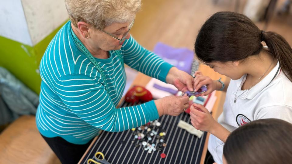 Заедно со пензионерките, учениците совладуваат практични вештини како готвење, месење колачи, шиење, кроење, плетење и везење, како и активности за уредување на домот.