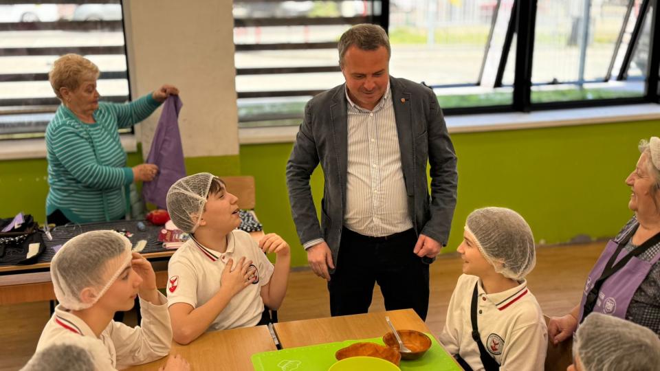 Градоначалникот на Општина Центар, Горан Герасимовски, присуствуваше на едукативно-креативната работилница во ООУ „Киро Глигоров“, каде пензионерките од „Активот на жени“ ги учеа седмодделенците за велигденските обичаи, фарбањето на јајца и подготовките за големиот  празник, како дел од часот по домаќинство.